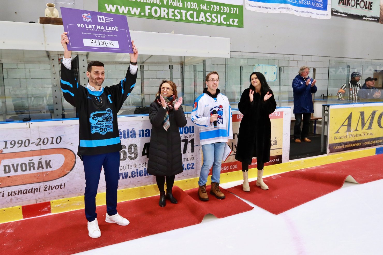 Nemocnici Havlíčkův Brod minulý týden pomohl jiný tým na Vysočině, a to klub HC Světlá nad Sázavou. Tamní oddíl oslavil devadesát let od založení a při této příležitosti si pro diváky připravil exhibiční akci. Organizátoři složili Tým Legend Světlé nad Sázavou a Tým Veteránů České republiky, za který si zahrál současný kapitán Bruslařů Jan Novák.